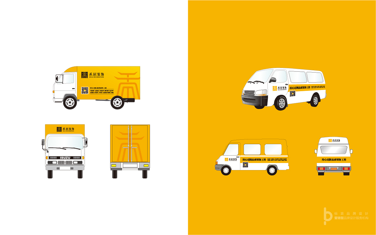 標志以品牌首字‘禾 ’為核心設計元素,將屋檐的特征融入到字體的設計中,美觀且貼合行業屬性。禾的字體筆畫參照篆體的寫法,傳達出古典中國美,是表文化與傳承的體現;整個禾字似一座聳立的建筑,上窄下寬、左右對稱,穩定的結構給人信賴感;嚴謹的筆畫與倒角寓意著企業對細節禾品質的追求;